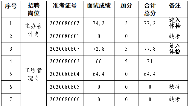 根据《leyu乐鱼(中国)招聘考试公告》,面试工作已于2020年8月8日结束,现将考生的成绩予以公告: