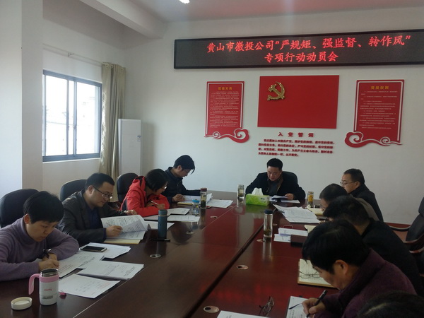 3月12日下午,黄山市徽投公司党委书记、董事长洪筱明主持召开了公司“严规矩、强监督、转作风”集中整治形式主义官僚主义专项行动部署会。公司党委班子成员及全体员工参加会议。