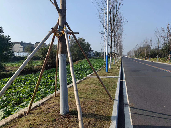 在经一路上可以看到工人忙碌的身影,提水、搅拌、粉刷,一排排行道树在他们的辛勤劳动下变得精神抖擞。为达到树木整齐美观的效果,严格按照比例配置涂白剂,确保同一区域内涂白的高度统一,做到细致均匀涂抹,重点对树皮缝隙、洞孔、树杈等处重复涂刷,避免涂刷流失、脱落等问题。